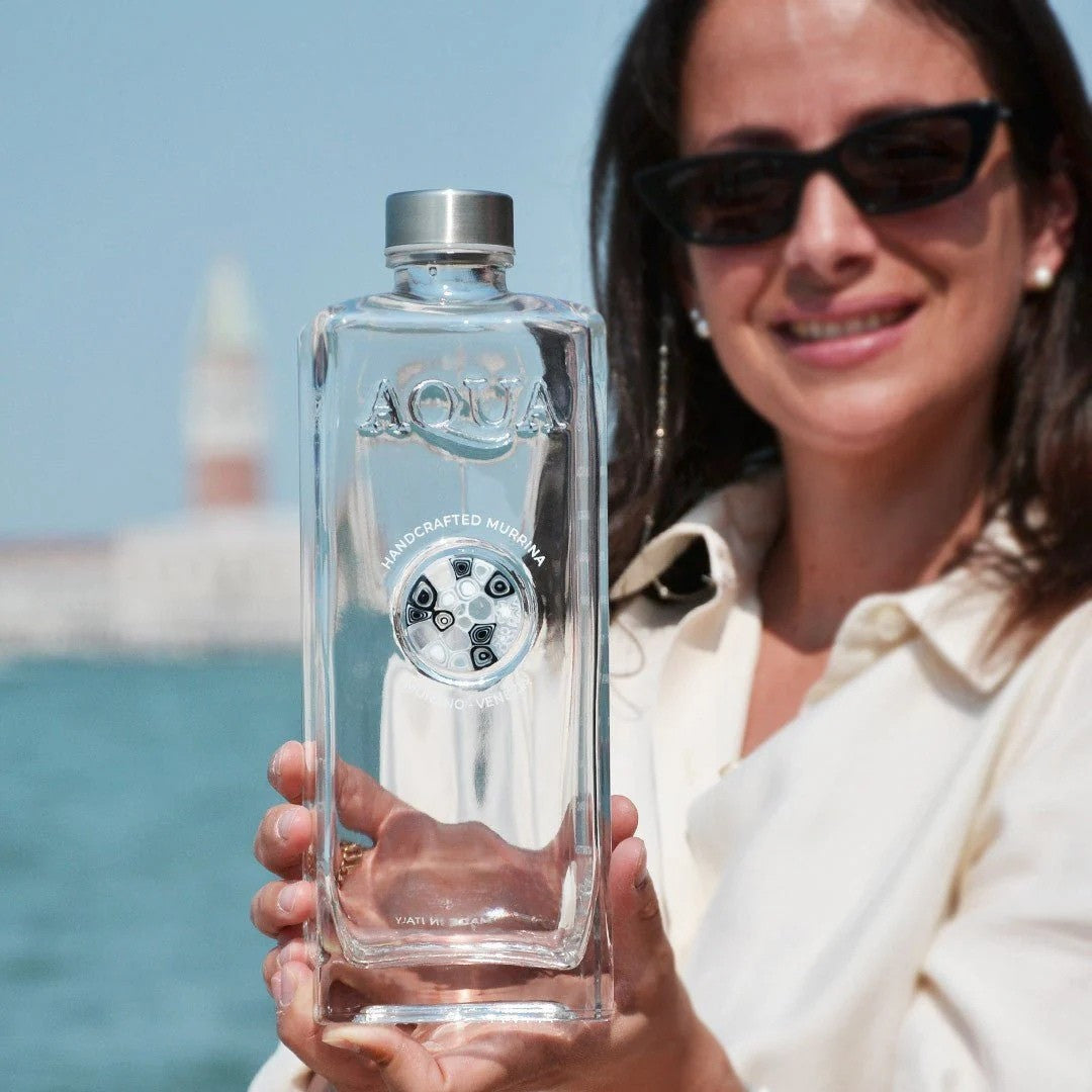Glass Bottle with Murrina Glass of Murano - White & Black.