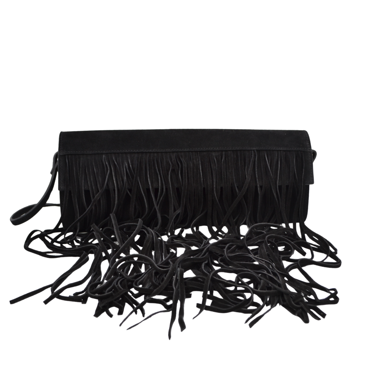 Cluch in pelle scamosciata arricchita da frange per un look veramente elegante e super cool! Disponibile in 4 colori diversi..quale...